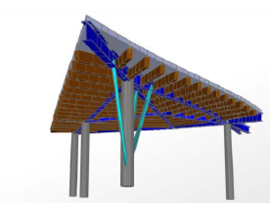 Modelización de cubierta compuesta por madera, acero y hormigón